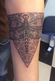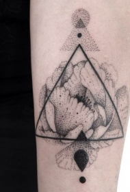 现代传统风格彩色花朵与三角形和眼睛纹身图案