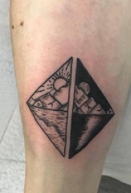 几何元素纹身 男生小腿上黑色的山水纹身图片
