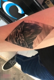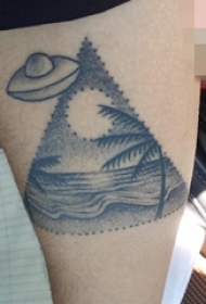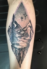 小腿上纹身黑白灰风格点刺纹身几何元素纹身风景图片