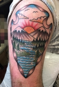 男生肩部纹身黑白灰风格纹身点刺技巧山水纹身风景图片