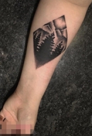 手臂上黑色点刺技巧几何元素山水风景纹身图片