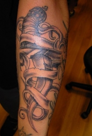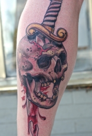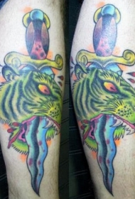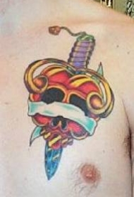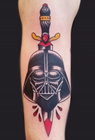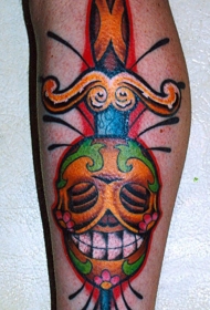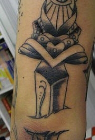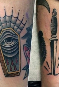 old school彩色蜘蛛网棺材和匕首纹身图案