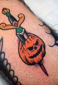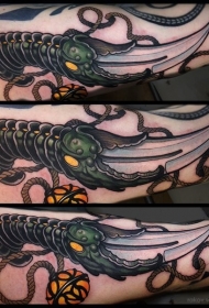 大腿恶心的彩色断头艺妓匕首纹身图案