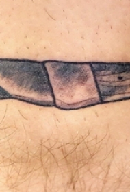 男生大腿上黑灰点刺技巧几何元素抽象线条匕首纹身图片