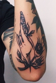 女生手臂上彩绘几何元素抽象线条眼睛和匕首纹身图片