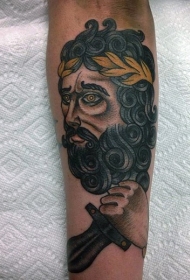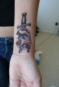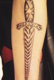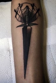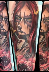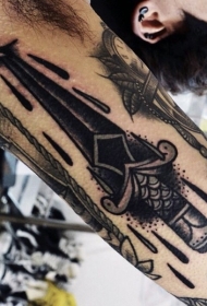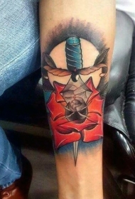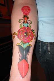 独特的彩绘匕首和玫瑰手臂纹身图案