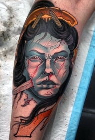 手臂亚洲卡通风格彩色邪恶女巫纹身图案