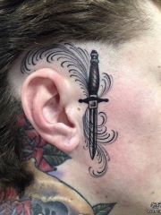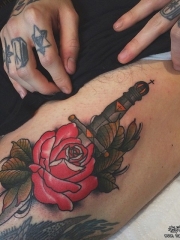 欧美school死亡女郎狼头匕首蛇纹身图案手稿