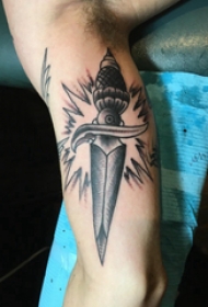 匕首纹身图案 男生大臂上锋利的匕首纹身图片