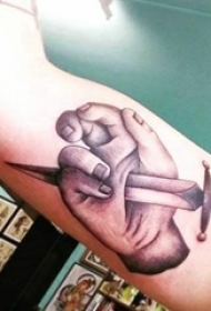 双大臂纹身 男生大臂上黑灰的手掌纹身图片