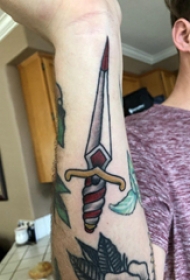 欧美匕首纹身 男生手臂上彩绘的匕首纹身图片