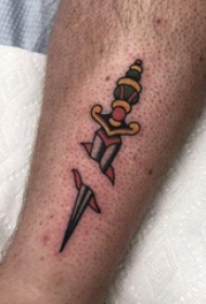 欧美小腿纹身 男生小腿上玫瑰和匕首纹身图片