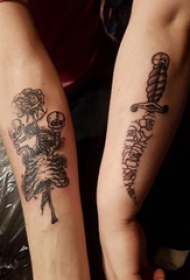 欧美匕首纹身 女生手臂上匕首和花朵纹身图片