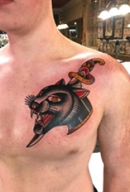 豹子头纹身 男生胸上豹子和匕首纹身图片