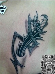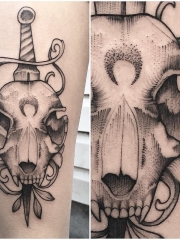 男人手臂霸气经典的匕首与骷髅纹身图案