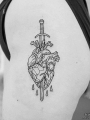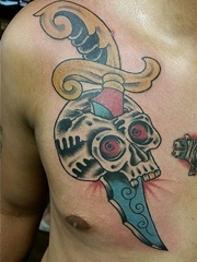 男性正前胸口上的眼睛,心脏匕首纹身图片