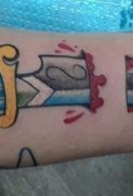 彩色纹身 男生手臂上彩色的匕首纹身图片