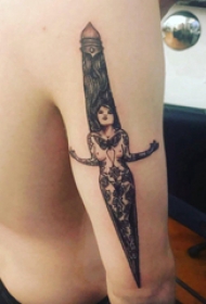 手臂纹身素材 男生手臂上人物和匕首纹身图片