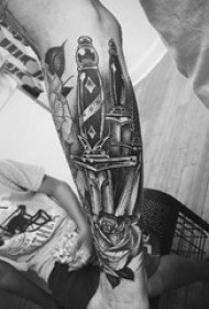 纹身黑色 男生手臂上玫瑰和匕首纹身图片