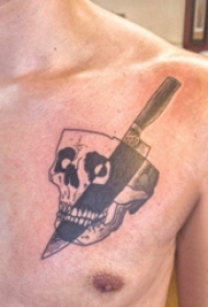 纹身胸部男 男生胸部匕首和骷髅纹身图片
