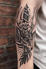欧美匕首纹身 男生手臂上欧美匕首纹身和鹿头纹身图片
