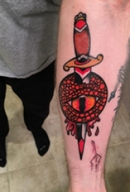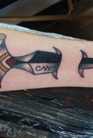 欧美匕首纹身 男生手臂上彩色的匕首纹身图片