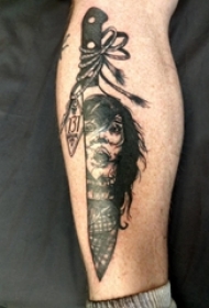 欧美匕首纹身 男生小腿上人物和匕首纹身图片