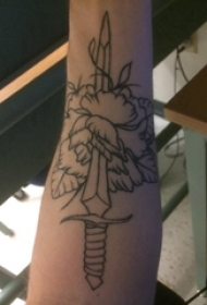 欧美匕首纹身 男生手臂上欧美匕首纹身花朵图案