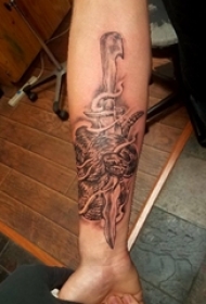 欧美匕首纹身 男生手臂上欧美匕首纹身黑灰图片