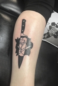 欧美匕首纹身 男生小腿上黑色的匕首纹身图片