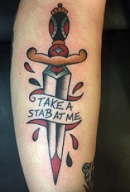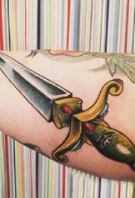 男生手臂上彩绘水彩素描霸气匕首纹身图片