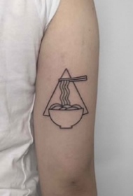 大臂后侧部的手肘拐处的一组小黑图纹身图案
