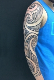 男生手臂上黑色线条几何元素创意霸气部落纹身图片