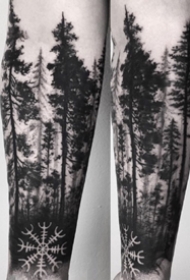 森林树木纹身图案_一组手臂上黑灰树木森林纹身图案作品