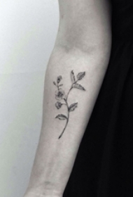 女生手臂上黑灰素描文艺小清新花朵纹身图片