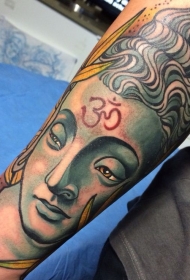 彩色印象深刻的如来佛祖雕像与装饰手臂纹身图案