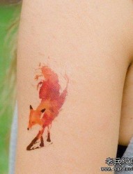 一幅胳膊彩色狐狸纹身图片由纹身520图库推荐