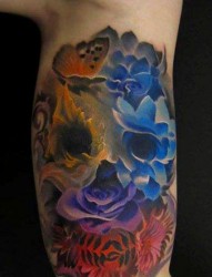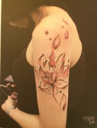 一幅女人胳膊彩色莲花纹身图片由纹身520图库推荐
