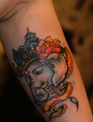 一幅胳膊内侧彩色象神文身图片由纹身520图库推荐