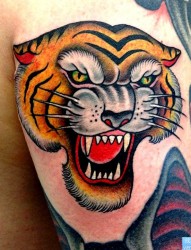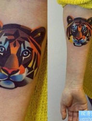 纹身520图库推荐一幅胳膊彩色老虎头文身图片