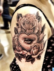 推荐一幅大臂爱心玫瑰花纹身图片