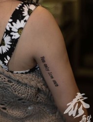 一幅女人胳膊水墨小骷髅儿纹身图片由刺青馆推荐