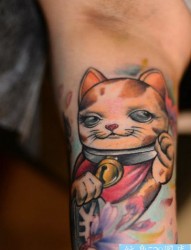 纹身520图库推荐一幅彩色招财猫纹身图片