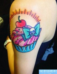 纹身520图库推荐一幅手臂卡通蛋糕樱桃纹身图片
