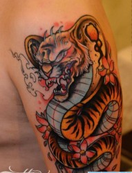 一幅手臂彩色老虎纹身图片由纹身520图库推荐