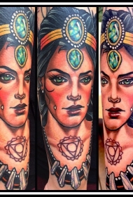现代风格的彩色女性与珠宝手臂纹身图案