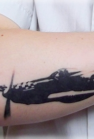 雕刻风格的黑色战机手臂纹身图案