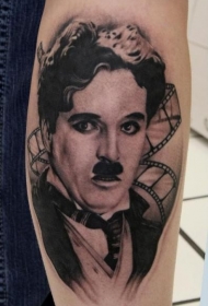 黑灰风格卓别林肖像手臂纹身图案