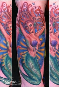 插画风格的性感美人鱼手臂纹身图案