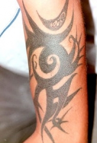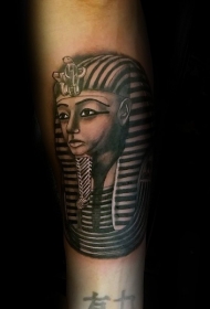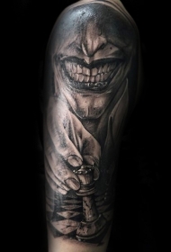 超现实主义风格的黑色点刺人头帽子手臂纹身图案